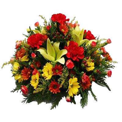 Descripcion: Centro floral elaborado con lilium asiatico, clavelina, margaritas, solidago y tuya. Precio final (Impuestos y gastos de envio en la ciudad de Cartagena y Periferia incluidos en el precio). Se lo podemos entregar hoy o el dia que usted elija. Si desea que lo enviemos a cualquier otro lugar de la provincia de Murcia, consultenos por telefono el coste de dicho envio
