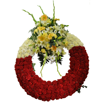 Descripcion: Corona Funeraria con cabecero, realizada con una selección especial de flores (Según la temporada de flor). Precio final (Impuestos y gastos de envio en la ciudad de Cartagena y Periferia incluidos en el precio). Se lo podemos entregar hoy o el dia que usted elija. Si desea que lo enviemos a cualquier otro lugar de la provincia de Murcia, consultenos por telefono el coste de dicho envio