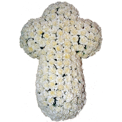 Descripcion: Cruz funeraria realizada con claveles. Precio final (Impuestos y gastos de envio en la ciudad de Cartagena y Periferia incluidos en el precio). Se lo podemos entregar hoy o el dia que usted elija. Si desea que lo enviemos a cualquier otro lugar de la provincia de Murcia, consultenos por telefono el coste de dicho envio